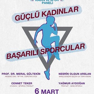 “Güçlü Kadınlar, Başarılı Sporcular” teması altında yapılacak panelin Moderatörlüğünü Akdeniz Girişimci İş Kadınları Derneği Başkanı Dr. Figen Sayın Yıldıran ele alacak, Oyuncu-Triatlet-Sporcu, Cennet Teker (56), Manş Denizi’ni geçen İlk Türk Kadını ve yüzücü Nesrin Olgun Arslan (62), Akdeniz Üniversitesi Tıp Fakültesi Öğretim Üyesi Prof. Dr. Meral Gültekin, öğrenci ve sporcu Yağmur Aydoğan (22) konuşmacı olarak yer alacaktır.