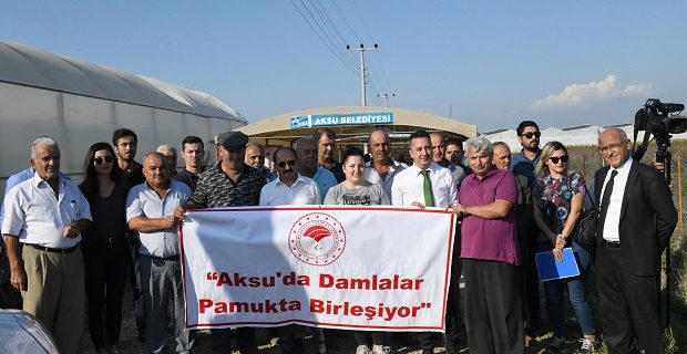 Çiftçi Veli Mekik’in 2 dönüm arazisi üzerinde uygulanan proje kapsamında pamuklara toprak altı damlama sulama yapıldı. Aksu İlçe Tarım ve Orman Müdürü İhsan İnal konuklarına proje hakkında bilgiler verdi. Ardından ise Kaymakamı Aydın Ergün, Belediye Başkanı Halil Şahin ve Belediye Başkan Yardımcısı Celil Gökçen pamuk hasat makinesinin üzerine çıkarak pamuk hasat işlemini yakından takip etti.