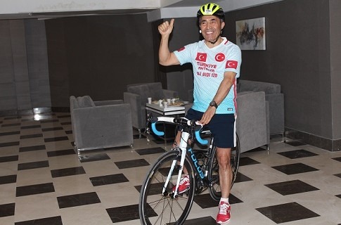 Toplantı sonunda özellikle yabancı katılımcıların yoğun ilgisiyle karşılaşan Ali Bıdı, bisikletiyle birlikte fotoğraf çekindi.