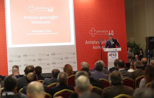 Antalya Büyükşehir Belediye Başkanı Menderes Türel, ATSO tarafından düzenlenen ‘Endüstri 4.0 ve Akıllı Kent uygulamalarını birleştiren dijital kent vizyonu: Antalya 4.0 Projesi ile ilgili düzenlenen toplantıda konuştu. Başkan Türel, ATSO’yu tebrik ettiği konuşmasında “Antalya 4.0 gibi, iddialı bir isim veya başlıkla yapılan bu toplantı için ATSO Başkanımıza ve yönetimine teşekkür ediyorum. Sayın Valimizin liderliği ve destekleriyle bu konuda daha hızlı bir gelişme sağlanacağına inanıyorum. Antalya’nın dijital dönüşümü konuşması ve bu noktaya gelmiş olması benim için büyük bir memnuniyet vesilesidir. Ben, Antalya’nın daima daha yüksek hedeflere ilerlemesi gerektiğine inanan ve bunu devamlı olarak dile getiren bir insanım. Bazı konuların konuşularak, tartışılarak olgunlaştırılması son derece önemlidir, dijital dönüşüm de böyle bir konudur” dede.