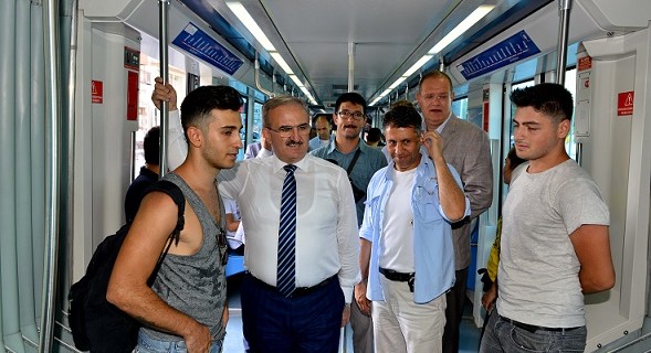 Vali Münir Karaloğlu, 3 gün önce havalimanındaki bekleme ve yoğunluğu azaltmaya yönelik toplantının ardından çalışmaları yerinde görmek üzere bugün itibariyle 20 dakikada bir seferlerin başladığı Havalimanı tramvay hattında incelemelerde bulundu. Muratpaşa Camisi durağından beraberindekilerle tramvaya binen Vali Karaloğlu, tramvayda vatandaşlarla sohbet ederek ve sorunlarını dinleyerek, havalimanına ulaştı.