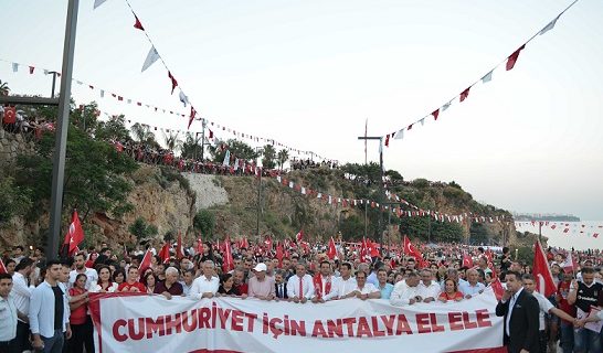 Muratpaşa Belediyesi’nin 100 üzerinde sendika, siyasi parti ve demokratik kitle örgütünün bileşeni olduğu Cumhuriyet İçin Antalya El Ele Platformu’yla birlikte düzenlediği 19 Mayıs Atatürk’ü Anma Gençlik ve Spor Bayramı kutlamaları yüz binleri biraraya getirdi.