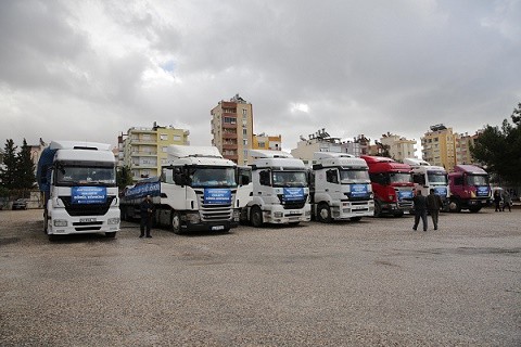 Büyükşehir Belediyesi Merkez Ambarından hareket eden TIR’ları, Büyükşehir Belediye Başkanı Menderes Türel, AK Parti Antalya İl Başkanı Rıza Sümer, İlçe Belediye Başkanları ve Büyükşehir Belediyesi bürokratları uğurladı. Başkan Türel, başta Suriye olmak üzere, dünyanın bir çok bölgesinde İslam aleminin yüreğinin yandığına dikkat çekerek, “Kardeşlerimiz, dünyanın birçok köşesinde adeta zulümle karşı karşıya. Ama zalimin zulmü varsa işte o zulüm gören kardeşlerimizin yanında da bizler varız. Bugün burada insani görevimizi yerine getiriyoruz. Kardeşlerimize Antalya’dan 7, İstanbul’dan da 2 olmak üzere toplam 9 TIR yardım malzemesini ulaştıracağız” diye konuştu.