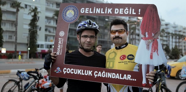 Antalya Falez Rotaract Kulübü, “Çocuk Gelinler” projesi kapsamında “Çocuk Yaşta Evliliklere Dur!” demek için bisikletli bir şehir turu düzenledi.