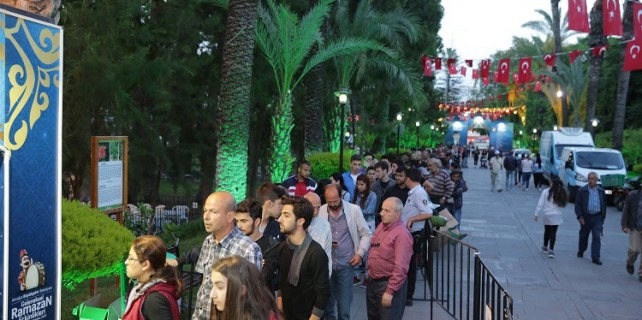 Büyükşehir Belediyesi’nin Karaalioğlu Parkı’nda kurduğu iftar sofrası Ramazan ayının ilk gününde doldu, taştı. Geleneksel Ramazan çarşısı ise Antalyalıların buluşma noktası oldu.