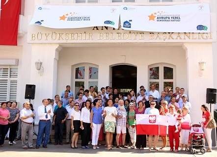Büyükşehir Belediyesi, Antalya’da yaşayan yabancı uyruklu vatandaşlar ile birlikte “Avrupa Yerel Demokrasi Haftası” etkinliği düzenledi. Büyükşehir Belediyesi önünde gerçekleştirilen etkinliğe, Büyükşehir Belediyesi Başkan Danışmanı İbrahim Evrim, ANSET Yönetim Kurulu Başkanı Gaye Doğanoğlu, Dış İlişkiler Daire Başkanı Seval Yasak, Ukrayna ve Polonya Derneği ve çok sayıda davetli katıldı. Törene katılan yabancı vatandaşlar kendi dillerinde hazırlanan pankartlar taşıdı.