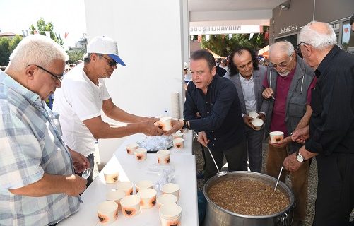 Ardından kürsüye gelen Başkan Muhittin Böcek ise konuşmasında aşurenin yardımlaşma ve kaynaşmayı beraberinde getirdiğini söyledi. Aşurenin Türk kültürünün bir parçası olduğunu belirten Muhittin Böcek, Konyaaltı Cemevi’nde düzenledikleri 8. Geleneksel Aşure Gününde 14 kazan aşure ikram edeceklerini bildirdi.