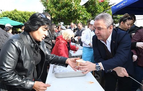 3 BİN KİŞİYE KURUFASULYE YEMEĞİ Çandır Fasulyesi Şenliği kapsamında Konyaaltı Kent Meydanı’nda kurulan kazanlarda kurufasulye yemeği pişirildi. Belediye eliyle ürettikleri Çandır Fasulyesi’nin yemeğini ikram ederek bu lezzeti halk arasında yaymak istediklerini ifade eden Muhittin Böcek, kazanların başına geçti ve vatandaşa kurufasulye yemeği ikram etti.
