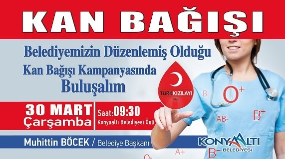 Konyaaltı Belediye Başkanı Muhittin Böcek, 29 Mart Çarşamba günü 13’üncüsünü düzenleyecekleri “Kan Bağışı Kampanyası” için vatandaşları duyarlı olmaya davet etti.
