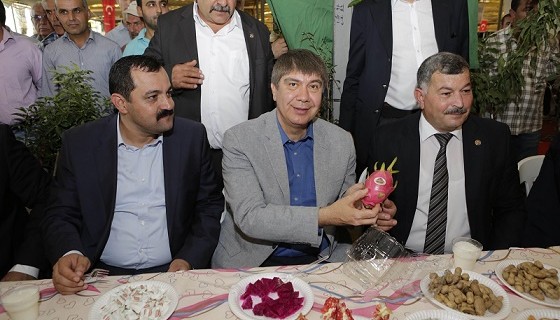Gazipaşalıların ürünlerini sergilediği stantları tek tek ziyaret eden Türel, patenti Gazipaşa’ya ait olan çekirdeksiz narın tadına baktı.