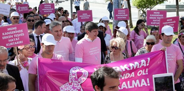 Antalya’da Büyükşehir Belediyesi, Antalya Gazeteciler Cemiyeti (AGC), Antalyaspor, Memorial Antalya Hastaneleri işbirliği ile meme kanserine karşı farkındanlık yürüyüşü düzenlendi. ‘Korkma Farkında Ol’ sloganı ile Cumhuriyet Meydanı’ndan başlayan yürüyüş, Karaalioğlu Parkı’nda sona erdi. Yürüyüşe Büyükşehir Belediye Başkanı Menderes Türel de katıldı. Başkan Türel, meme kanserine dikkat çekmek için “Korkma, Farkında ol, Geç Kalma’ yazılı pembe tişörtle yürüyüşünü gerçekleştirdi. Yürüyüşe, kanser hastaları, yakınları, aileleri ve Antalyalılar yoğun ilgi gösterdi.