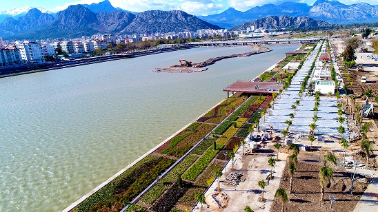 Ekipler, Boğaçayı’nın denizle buluştuğu alanın doğusunda ve batısında toplam 1200 metre uzunluğunda çevre düzenlemesi gerçekleştiriyor. Kanal boyunca 5 ahşap seyir terası oluşturuldu. Kent mobilyalarının konulacağı gölgelikler ve aydınlatma direkleri montajı tamamlandı. Mevcut tüm ağaçların korunduğu projede yeni 2300 ağaç dikildi. Spor ve çocuk oyun alanları şekillenmeye başladı. Proje alanının kuzey batısında yer alan ağaçlık bölümden geçen dere ıslah edilerek, güzel bir görünüme kavuşturuldu. Peyzaj çalışmaları kapsamında şu ana kadar 150 bin çalı bitkisi dikilirken, projenin ilk etabı tamamlandığında alana yaklaşık 300 bin çalı bitkisi dikileceği belirtildi.