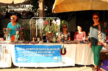 Büyükşehir Belediyesi Sosyal Hizmetler Daire Başkanlığı Haşim İşcan Aile Eğitim ve Sosyal Hizmet Merkezi’nde açılan kurslarına katılan kadınlar hem yeni beceriler öğreniyor hem de öğrendiklerini uygulayarak aile bütçesine katkı sağlıyor. Eğitimde öğrendiklerini pratiğe çeviren hanımlar yaptıkları el emeği göz nuru ürünlerini, her gün 15.00 ile 23.00 saatleri arasında Kale Kapısı’nda açılan stantlarda satışa sunuyor. Geliri olmayan kadınlara destek olmak için açılan stantta, eski dantelleri değerlendirerek yapılan süslerden tutun da otantik takılara kadar her şey yer alıyor.