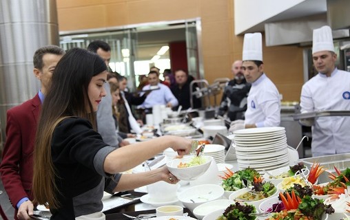 Büyükşehir Belediyesi Yeni Hizmet Binası’nda faaliyete geçen EKDAĞ A.Ş Sosyal Tesisi lüks restoranları aratmıyor. Misafirlerine tabldot ve alakart yemek seçenekleri sunan tesisin ilk konuklarından biri de Başkan Menderes Türel oldu. Türel, öğle yemeğini, personelle birlikte sıraya girip yedi.