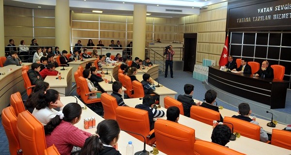 Öğrenciler, daha sonra meclis salonunda Kepez Belediye Başkanı Hakan Tütüncü’nün konuğu oldular. Öğrencilerle neşeli bir sohbet gerçekleştiren Başkan Tütüncü, öğrencilerin isteklerini dinledi, sorularını cevapladı.