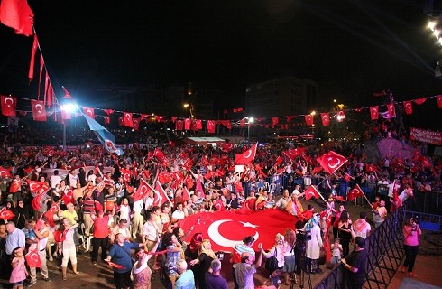 Antalya Cumhuriyet Meydanı tarihi günler yaşıyor. Antalyalıların 15 Temmuz darbe girişimine karşı duruşları dimdik devam ediyor. Her yaştan ve siyasi görüşten on binler, Türk Bayrakları ile kırmızı beyaza boyadıkları Cumhuriyet Meydanı’nda demokrasiye sahip çıkıyor. Ellerinde Türk Bayrakları, dillerinde Türkiye şarkıları ile vatandaşlar, demokrasi şöleni yaşatıyor. Cumhuriyet Meydanı’nı yakın bir yerde meydana gelen nedeni belirsiz patlama dahi Antalyalıların nöbet aşkına engel olamadı. Binlerce Antalyalı yine meydana akın ederek, nöbetine devam etti.