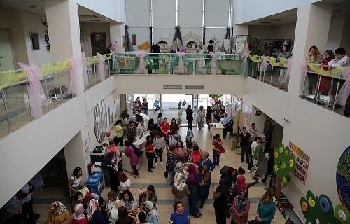 Büyükşehir Belediyesi Sosyal Hizmetler Daire Başkanlığına bağlı Haşim İşcan Aile Eğitim Merkezi’nde hobi kursları kapsamında verilen eğitimlerden faydalanan annelerin yaptığı