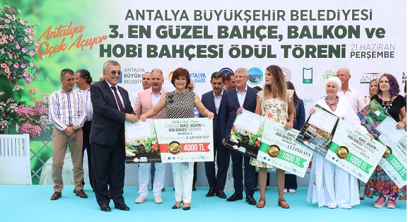 Antalya Büyükşehir Belediyesi’nin bu yıl üçüncü kez düzenlediği ‘En Güzel Bahçe, Balkon ve Hobi Bahçesi Yarışması’nda dereceye girenler ödüllerini düzenlenen törenle aldı.