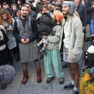 Etek giyen eylemciler İstiklal Caddesi’nde biraraya geldi.