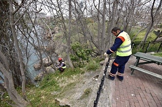 Muratpaşa Belediyesi Temizlik İşleri Müdürlüğü bünyesinde 1’nci derece doğal SİT statüsünde bulunan falez kıyı oluşumun temizliği için oluşturduğu özel ekip, falezleri saran ot ve sazlıkları temizledi. Falez-2 Park’ta gerçekleştirilen temizlik çalışması için özel donanımlı ekipler halatlar yardımıyla en zor yerlere inerek kış mevsimi boyunca büyüyen çalıları, sazlıkları temizledi. Yaklaşık 10 kilometrelik falez bandında; ot temizliğinin tamamlanmasının ardından pet ve cam şişe ile ambalaj gibi atıkları ve çöplerin temizliği de gerçekleştirilecek.