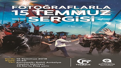 Antalya Büyükşehir Belediyesi tarafından 15 Temmuz Demokrasi ve Milli Birlik Günü etkinlikleri kapsamında fotoğraf sergisi düzenlenecek. Konyaaltı Sahil Antalya Yaşam Merkezi’nde açılacak sergide Anadolu Ajansı muhabirleri tarafından çekilen, darbe girişiminin olduğu gün ve sonrasında yaşananları anlatan fotoğraflar yer alacak.