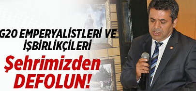 15-16 Kasım tarihlerinde kentimizde düzenlenecek olan G20 zirvesi dünya işçi sınıfı ve ezilen ulusları nezdinde şehrimizin itibarını zedelemektedir. Gelinen noktada dünyanın en önemli sorunları; emperyalist savaşlar, gelir eşitsizliği, açlık ve yoksulluktur. Bu sıkıntıların temel kaynağı başta ABD olmak üzere emperyalist devletlerdir. Özellikle son 10 yıldır Ortadoğu’yu ve ülkemizi bir kan deryasına çeviren başta ABD olmak üzere Nato’ya bağlı emperyalist devletler; bu kan emici politikalarından vazgeçmedikçe bizim misafirimiz olamazlar, onlara “Hoşgeldiniz” diyemeyiz. Onlara söyleyecek tek bir cümle sözümüz vardır: “Ülkemizi kan emici sömürü politikalarınızın piyonu haline getiren işbirlikçi AKP’nizi ve sizin deyiminizle Ortadoğu’daki kara gücünüz olan PKK’nızı da alın defolun gidin vatanımızdan!”