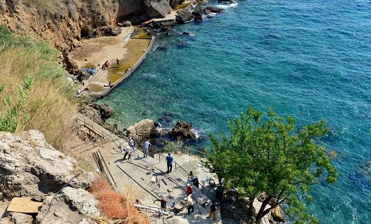 Muratpaşa Belediyesi, falezlerden denize iniş ve güneşlenme platformu için Kültür ve Tabiat Varlıkları Koruma Bölge Komisyonu’nca onay verilen Atan Park Otel önünde bulunan noktada çalışmalarını yoğunlaştırdı