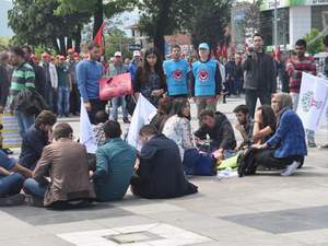 1 Mayıs İşçi Bayramı nedeniyle sivil toplum örgütleri, sendika üyeleri ve işçiler ellerinde pankartlarla Düzce Belediyesi önünde toplandı. Yaklaşık dört yüz kişi İstanbul Caddesi üzerinden Anıtpark’a doğru yürüyüşe geçti. ’İşçiyiz haklıyız kazanacağız’ sloganları atan grubu vatandaşlarda meraklı bakışlarla izledi. Kutlamanın yapılacağı Anıtpark’a gelenler polis kontrolünden geçtikten sonra alana alındılar. Saygı duruşu ve İstiklal Marşı’nın okunması sırasında alanda bulunan HDP’li grubun oturmaya devam etmesi gerginliğe neden oldu. Alanda bulunan işçiler HDP’lilere tepki gösterirken iki grup arasında kısa süreli arbede yaşandı. Polis ekiplerinin olaya müdahale etmesinin ardından alanı dolduranlar ’Dışarı’ sloganları attı. HDP’li grup ıslıklar ve yuhalanmalar eşliğinde polis nezaretinde alandan çıkarılarak uzaklaştırıldı. Anıtpark’ta toplanan kalabalık daha sonra halaylar çekerek 1 Mayıs’ı coşkuyla kutladılar.