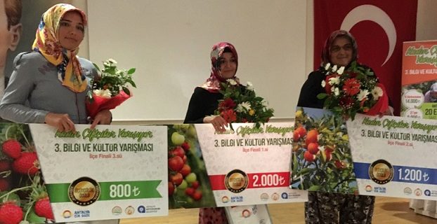 Antalya Büyükşehir Belediyesi ile Antalya İl Tarım ve Orman Müdürlüğü’nün kadın çiftçilerin bilgi birikimine katkı sağlamak amacıyla bu yıl üçüncüsünü düzenlediği ‘Kadın Çiftçiler Yarışıyor Bilgi ve Kültür Yarışması Gündoğmuş etabı ile başladı. Kepez etabı ile devam etti. Gündoğmuş birincisi Ayşegül Yılmaz, Kepez ilçesinin birincisi ise Aysel Atik oldu…