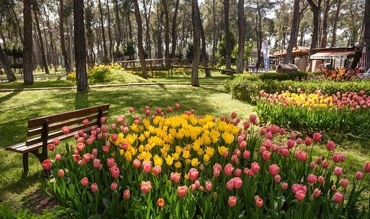 Kepez Belediyesi’nin, Kent Ormanı’nda oluşturduğu rengârenk lale çiçeği bahçeleri, parkı ziyarete gelenlere muhteşem bir görsel şölen sunuyor.
