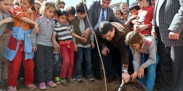 Konuşmaların ardından Başkan Hakan Tütüncü, Milletvekili Aydın, muhtarlar ve çocuklar fidanları okul bahçesine diktiler. Tütüncü, ağaçlara ilk can suyunu da çocuklarla birlikte verdi.