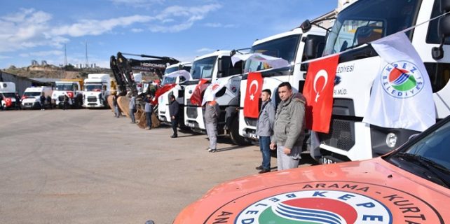 Kepez Belediyesi, depremzedeler için başlattığı yardım kampanyasının ardından, arama kurtarma ve yardım çalışmalarına destek olmak amacıyla bölgeye koştu. Kahramanmaraş’ta 7.4 büyüklüğünde yaşanan ve 10 ilin etkilendiği deprem bölgesindeki arama kurtarma ve yardım çalışmalarına destek için bölgeye ekskavatör, 4×4, kamyon, çift kabin arazi araçları transit, tır, sağlık tırı, kepçe, sağlık ekibi ve arama kurtarma ekibi gönderildi. Kepez Belediye Başkanı Hakan Tütüncü, belediye ekipleriyle tek tek tokalaşarak, “Allah yolunuzu açık etsin. Rabbim hepimize güç, kuvvet versin” diyerek, dualarla uğurladı.