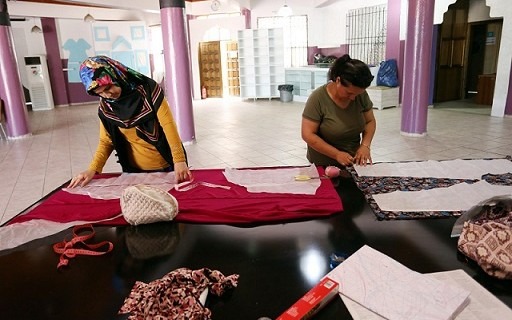 Ailelerinin kıyafetlerini dikiyorlar
