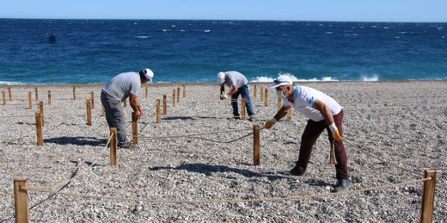 Konyaaltı Sahili’nde sosyal mesafe düzenlemesi