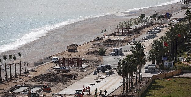 Antalya’nın pırlanta gerdanlığı, dünyaca ünlü Konyaaltı Sahili, yaz sezonunda yeni yüzüyle Antalyalılara ve turizme hizmet verecek. Alt yapı çalışmaları tamamlanan sahil projesinde üst yapı imalatları son hızla devam ediyor. Yeşilin maviyle buluşacağı projeye ilave edilecek 5 bin 234 yeni ağaçtan, 300’ünün dikimi gerçekleştirildi. Proje kapsamında sökülüp bakıma alınan ağaçlar da tekrar proje alanındaki yerlerini almaya başladı.