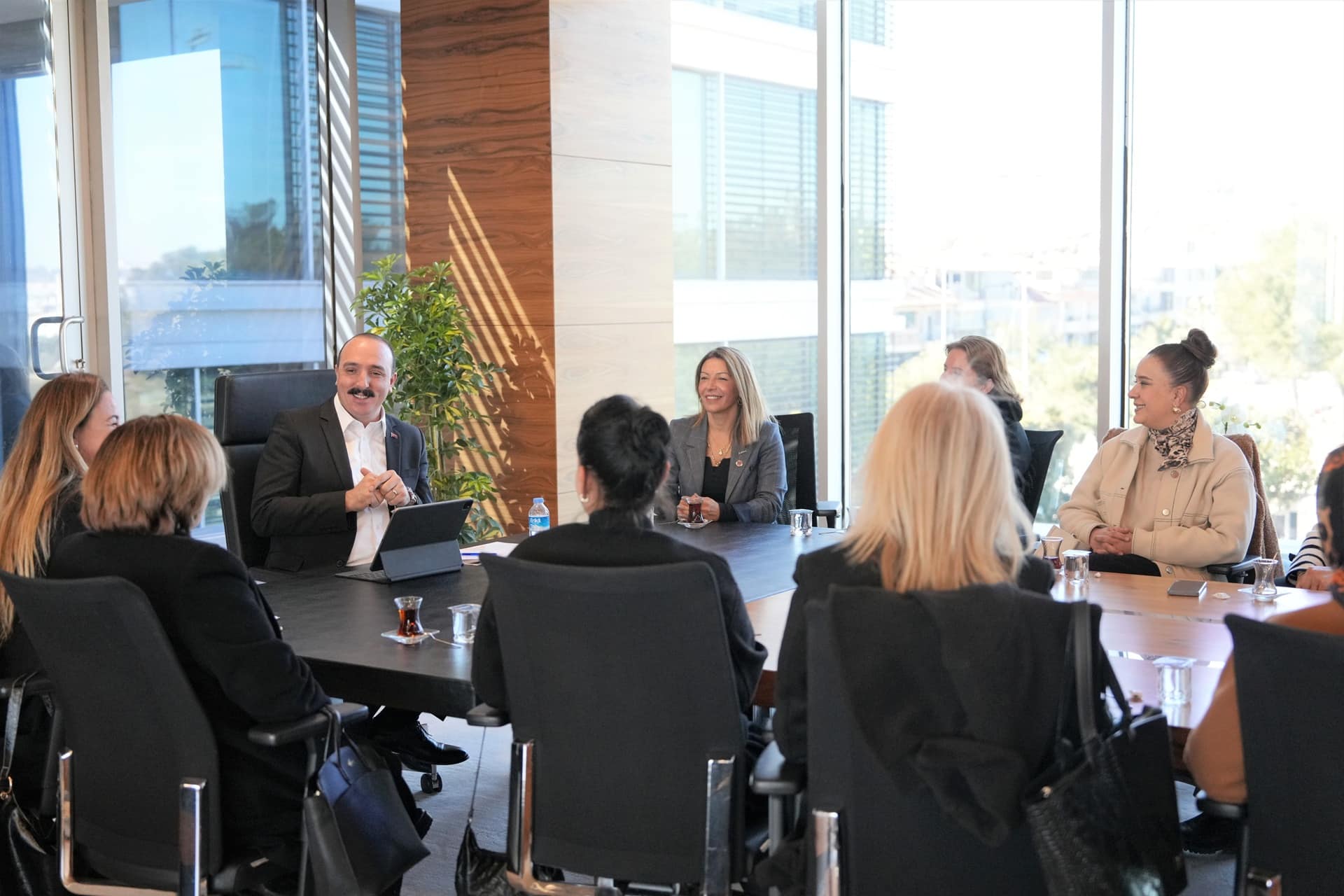 Konyaaltı, Muratpaşa, Kepez, Kemer ve Aksu ilçelerinde görev yapan kadın muhtarlar Konyaaltı Belediye Başkanı Cem Kotan’ı makamında ziyaret etti. Türkiye Kadın Muhtarlar Antalya İl Temsilcisi ve Muratpaşa Üçgen Mahalle Muhtarı Aynur Baycın, Konyaaltı Kent Konseyi Kadın Meclisi Başkanı ve Konyaaltı Gürsu Mahalle Muhtarı Özlem Saday ve Konyaaltı Muhtarlar Derneği Başkanı ve Konyaaltı Öğretmenevleri Mahalle Muhtarı Mihriban Sarı olmak üzere 11 kadın muhtarın yer aldığı ziyarette muhtarlar Başkan Kotan’a, kendilerine verdiği desteklerden dolayı teşekkür etti. Toplantıda ayrıca, kadın muhtarların yerel yönetimlerdeki yerinin önemi, toplumsal cinsiyet eşitliği ve Konyaaltı Belediyesi’nin bu konulardaki çalışmaları ele alındı. Göreve geldiği günden bu yana kadın muhtarlara elinden gelen desteği vermeye gayret ettiğini aktaran Başkan Kotan, ‘‘Yerel yönetimlerde kadın temsili arttıkça, ülke genelinde daha adil ve kapsayıcı bir yönetim anlayışı hakim olacaktır’’ dedi.