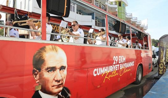 Antalya Büyükşehir Belediyesi’nin 29 Ekim Cumhuriyet Bayramı coşkusunun kent genelinde yaşanması için düzenlediği mobil konserler başladı. Antalya Büyükşehir Belediyesi Bando ve Orkestrası ile yerel sanatçılardan oluşan Cumhuriyet Bandosu, mobil etkinlik otobüsleri ile Aksu, Döşemealtı, Kemer, Gündoğmuş ve Akseki’de konser verdi. Ellerinde Türk bayraklarıyla caddeleri dolduran vatandaşlar bandonun şarkılarına eşlik ederek coşkulu anlar yaşadı.