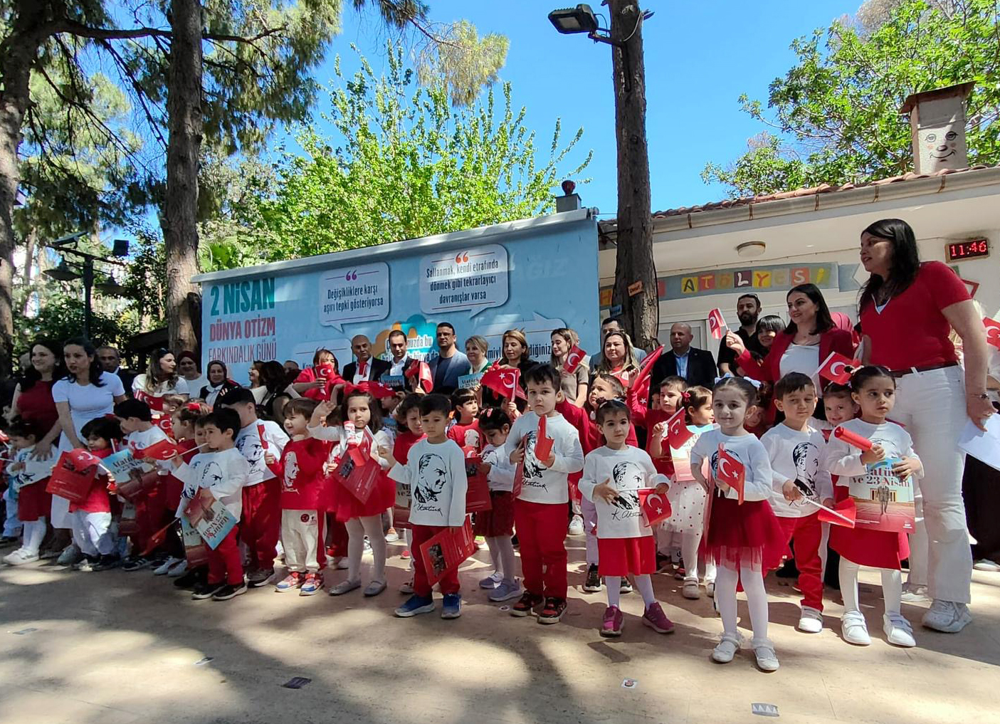 Ayrıca kreş öğrencileri, Engelsiz Kafe’de düzenlenen programda 23 Nisan Ulusal Egemenlik ve Çocuk Bayramı’nı kutladı. İstiklal Marşı’nın okunmasıyla başlayan programda öğrenciler ritim gösterileri ve dans performanslarını sergiledi. Etkinlik kapsamında palyaço etkinliği ve yüz boyama çalışmaları da yapıldı. Kırmızı-beyaz Türk bayrağı renklerinde giyinen çocuklar, hazırladıkları danslarla katılımcılardan büyük beğeni topladı. Etkinlikte ayrıca miniklere “Atatürk ve 23 Nisan” isimli bir kitap dağıtıldı.