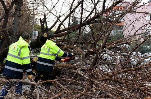 Antalya’da dün akşam saatlerinde başlayan yağış gece saatlerinde kuvvetli rüzgarla birlikte etkisini arttırdı. Hızı saatte 90 kilometreyi bulan şiddetli rüzgar nedeniyle çok sayıda ağaç devrilirken Muratpaşa Belediyesi ekipleri de devrilen ağaçları kaldırmak için çalışmalara başladı. Ekiplerin, gece yarısı başlayan mesaisi de devam ediyor. Ekipler son olarak kentin ana ulaşım akslarının bağlantı noktası Mevlana kavşağında devrilen kaldırdı. Ağaç, motorlu testerelerle kesilip kepçe yardımıyla kamyona yüklendi.