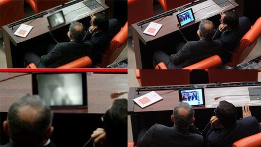 ‘Bunlar mı interneti yasaklayacak’ tepkisiyle binlerce kişi fotoğrafı paylaştı. Paylaşılan fotoğrafta vekillerin tablet ekranlarından seks kasedi görüntüleri izlyordu.