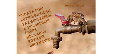 Ülkemiz bu günlerde çok sıcak günler yaşamakta ve sıcaklardan bunalan insanlar kendini tatil köylerine, denizlere veya havuzlara atıyor. Unutmayalım ki nasıl biz bu sıcaklarda bunalıyorsak doğada bulunan tüm yaşamlarda bu sıcaklardan olumsuz etkileniyor. Siz insanlara düşen görev işe bu sıcaklarda bunalan hayvanların az da olsa sıcak stresini ortadan kaldırmak için kapınızın önüne Bir kap su koymak.
