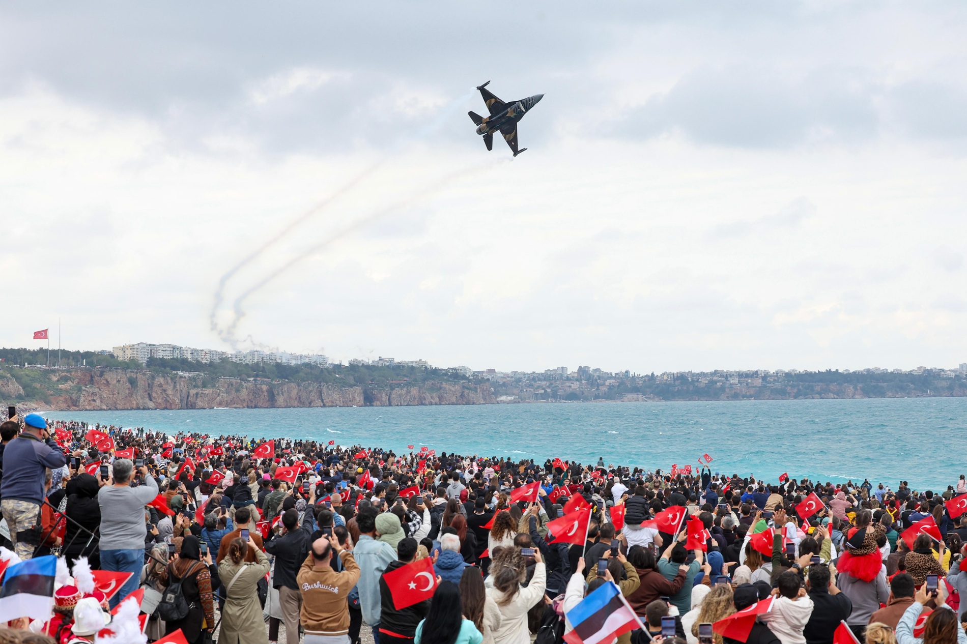 Antalya Valiliği ve Büyükşehir Belediyesi işbirliğiyle 23 Nisan Ulusal Egemenlik ve Çocuk Bayramı kutlamaları kapsamında SOLOTÜRK akrobasi timi Konyaaltı Sahili’nde muhteşem bir gösteriye imza attı. Binlerce Antalyalı da gösteriyi izlemek için ellerinde Türk bayraklarıyla sahile akın etti. Antalya Valisi Hulusi Şahin, Antalya Büyükşehir Belediyesi Başkan Vekili Büşra Özdemir de gösteriyi Çocuk Başkan Can Toprak Güven ile birlikte izledi.