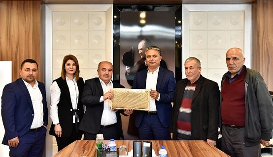 Ziyaretin sonunda Dernek Başkan Zeybek, Başkan Uysal’a İmecik Yaylasındaki kovanlardan çıkan bir çıta bal hediye etti.
