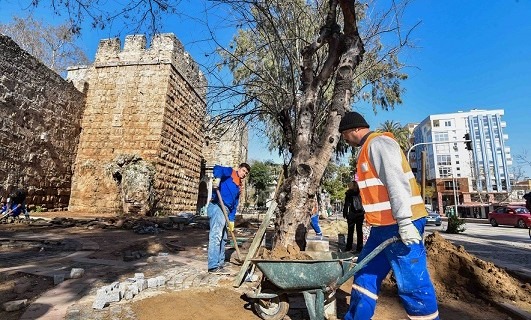 Muratpaşa Belediyesi, Üç Kapılar’ın önünde bulunan parkta yenileme çalışmalarına başladı. Sur duvarları yüksekliğinde ağaçlarla kaplı, küçük ancak Antalya’nın yaz sıcaklarında kısa bir mola arayanların, Kaleiçi’nin dar sokaklarında yorulup dinlenmek isteyenlerin sıklıkla tercih ettiği parkta çalışmalar yüksek turizm sezonu öncesinde tamamlanacak.