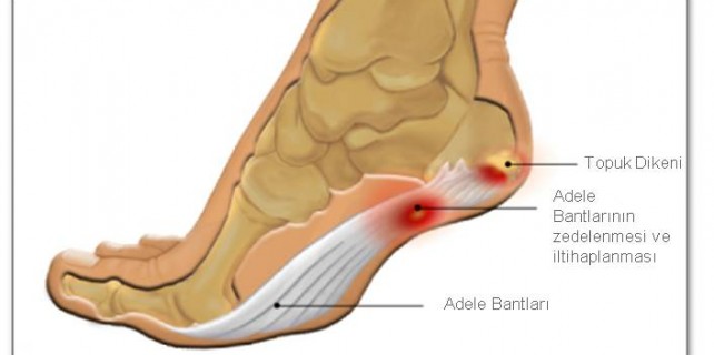 Erişkinlerde topuk ağrısının en sık sebebidir. Aslında ağrıya sebep olan ayak röntgeninde kalkaneus kemiğinde gözüken çıkıntı (epin kalkanei) değildir. Yapılan birçok araştırmada özellikle 50 yaş üstü erişkinlerde başka bir sebeple çekilen ayak röntgenlerinde bu çıkıntının gözüktüğü ve hastaların en az yarısında topuk ağrısından yakınmadıklarını göstermiştir. Ortopedistler olarak hastalarımızı tedavi ederken bu çıkıntıyı ortadan kaldırmak gibi bir amacımız hiç bir zaman olmaz.