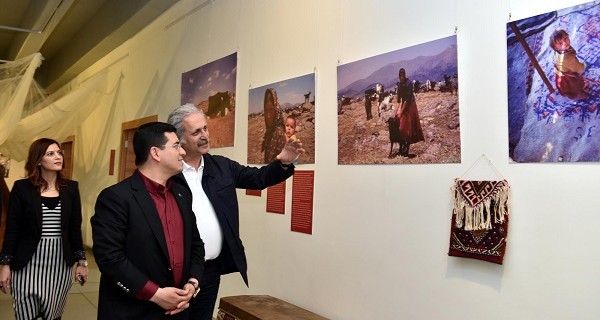 Nevzat Çevik, sergideki Yörük hayatını ve düğünü özetleyen fotoğraflar, Yörüklerin gündelik yaşamında kullandığı etnografik objeler, Yörük dokumaları ve Döşemealtı halıları hakkında Tütüncü’ye bilgi verdi.