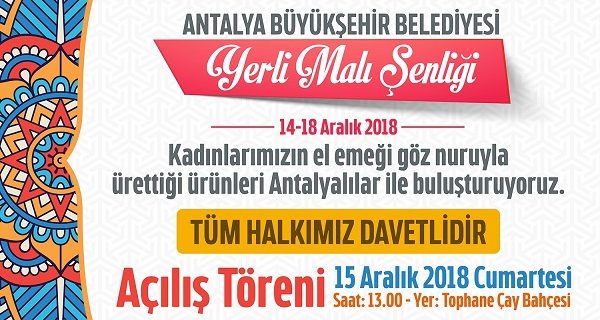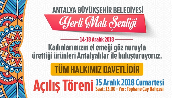 El emeği göz nuru ürünler Büyükşehir Belediyesi tarafından tahsis edilen 75 stantla satışa çıkacak. Açılışı 15 Aralık 2018 saat: 13.00’da Tophane Çay bahçesinde yapılacak etkinlikte birbirinden kıymetli ürünler Yerli Malı Şenliği’nde Antalyalılarla buluşacak.