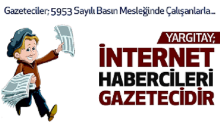 Yargıtay ‘Gazetenin yayınlanması bir başka anlatımla basılıp çoğaltılması gerekirse de günümüzde teknoloji ve iletişimin geldiği nokta itibarıyla, gazetenin nesne olarak basımı ve dağıtımı bir zorunluluk değildir. Gazetenin elektronik ortamda, umuma açık olarak yayınlanması ve okuyucunun yararlanmasına sunulması da mümkündür. Somut olayda davalı işveren, internet ortamında gazetecilik faaliyetlerini yürütmüş ve davacı da iki gazetenin koordinatörlüğünü yapmıştır. Bu itibarla davacının çalıştığı işyeri, 5953 Sayılı Yasa’nın 1. Maddesi’nde sözü edilen “gazete” kavramı kapsamında değerlen- dirilmelidir” diyerek Kanun’un 1. Maddesi’nin geniş yorumlanması gerektiğine karar vermiştir.”